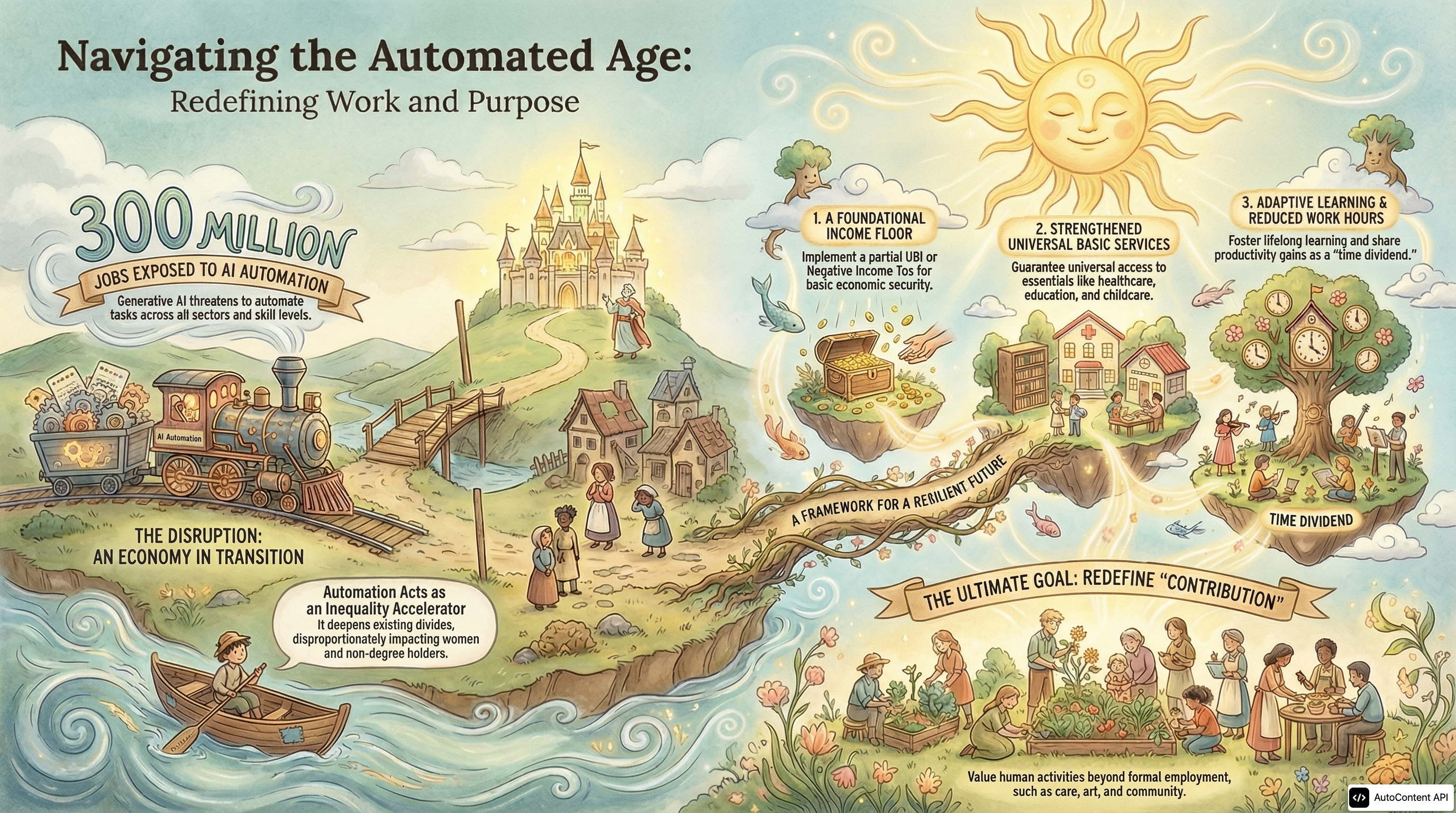 This podcast delves into the impact of AI and automation on jobs, exploring both potential job displacement and the creation of new roles. It emphasizes the need for systemic solutions, like universal basic income, to address the profound socioeconomic challenges posed by these technological advances.